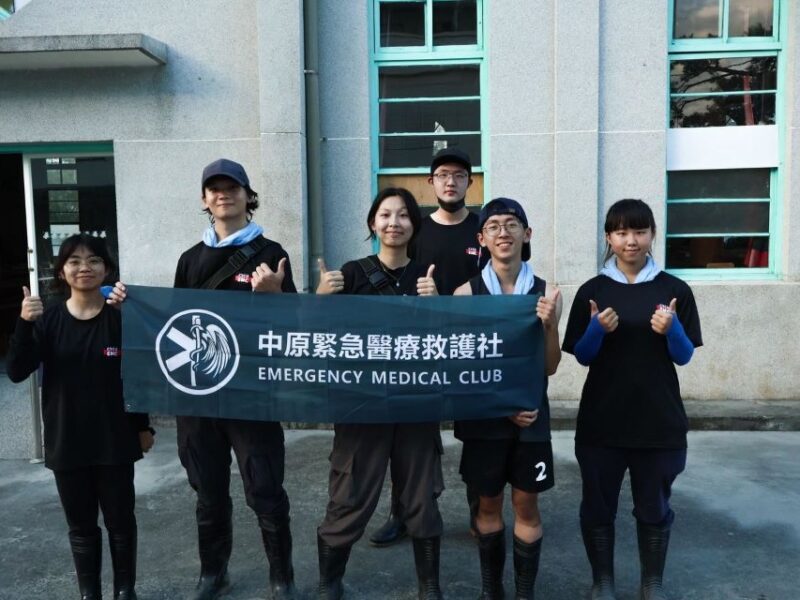▲中原大學「緊急醫療救護社」志工參與災區服務,發揮急救專業,獲得好評。
