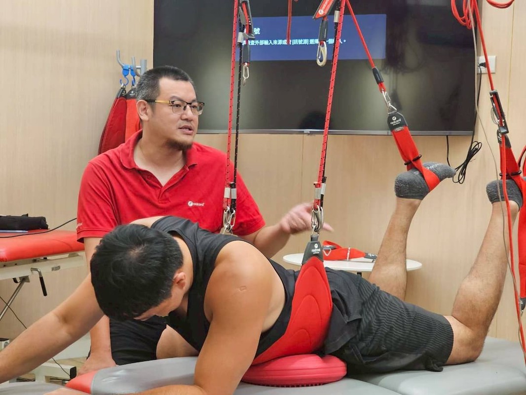 位於新北板橋的神手板橋物理治療所引進「Redcord紅繩懸吊系統」,由具備原廠國際講師資格與臨床認證(CNP)的物理治療師團隊負責授課與指導。治療團隊指出,紅繩訓練並非制式流程,而是依據個別身體狀況、生活型態與動作表現進行完整評估,再規劃合適的訓練內容。