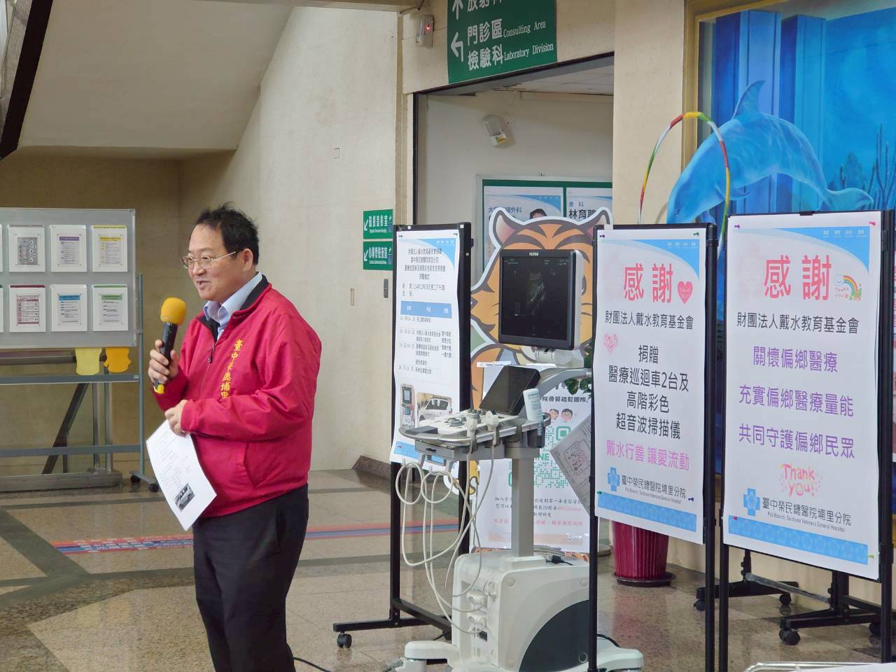 臺中榮總埔里分院衷心感謝財團法人戴水教育基金會的善行義舉,基金會的愛心與善心捐贈,是對偏鄉醫療的無私奉獻,更是對本院的肯定和鼓勵。埔里分院會持續不斷努力,充分運用兩部醫療巡迴車及超音波儀器,致力照顧關懷大埔里鄉親身心健康,提昇偏鄉醫療服務品質及熱度,弭平城鄉醫療差距,成為偏鄉醫療服務典範。