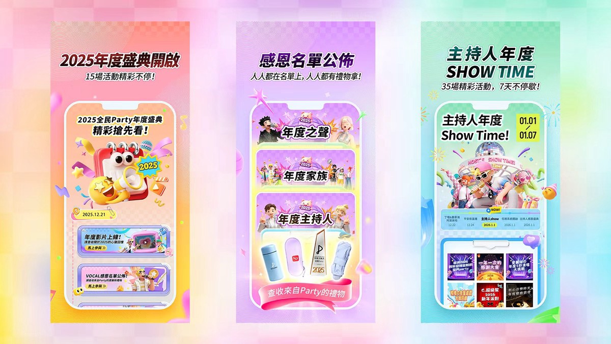 全民Party「2025年度盛典」開拓明星與用戶互動邊界,數據表現亮眼,當「2025年度盛典:擁抱心底的聲音」的旋律響起,全球千萬華人再次在「全民Party」找到了回家的感覺。這不僅是一場跨越歲末年初的線上狂歡,更是一次關於「陪伴」的深情告白。在這裡,全民Party拉近了隔在明星舞台與手機螢幕之間的距離,讓遙不可及的偶像變成了更貼近的K歌互動體驗,讓每位用戶都能與巨星產生更多互動。「知名明星IP」與「核心用戶社群」雙引擎驅動的內容生態,使得全民Party構建出了一個獨特溫暖的語音社交世界。 行業創新:聯手相信音樂 「演唱會後台直播」獨家玩法 「創新後台直播,直擊現場!」平安夜當晚,全民Party作為《HOHOHO!唱響平安夜》公益演唱會的獨家線上合作夥伴,不僅將百名用戶送上VIP前排觀演區,更是創新開啟了「演唱會後台語音直播」,將直播間變成了藝人上台前後的「第二舞台」,讓Energy、丁噹、白安、GX(鼓鼓 呂思緯 & 蕭秉治)等實力派歌手,在真實的狀態下與線上用戶實時互動。這種拉近虛實邊界的嘗試,不僅呈現了數位時代的追星體驗,更展現了全民Party作為「貼近明星的音樂社交場域」,擁有承接知名娛樂資源落地轉化的獨特優勢。 圖/全民Party提供 「巨星接力,原聲原唱現場聽!」2025年12月22日至2026年1月2月期間,三場「巨星專場」直播輪番登場,為用戶帶來了持續的驚喜體驗。丁噹與蕭景鴻(阿弟)率先打頭陣,驚喜合體演繹《可以是朋友》,展現深厚默契;超人氣組合 GX(鼓鼓 呂思緯 & 蕭秉治)雙人主持,獻唱多首金曲,將直播間氣氛推向高潮;最後,創作才女白安KTV私人包廂壓軸登場,聯唱多首未在其他場合演唱的歌曲。值得一提的是,連續三場精彩的線上音樂會也離不開2025全民Party曲庫升級的努力,眾多歌手原聲原唱原版伴奏都已在全民Party上架。 用戶為本:85億秒演唱總時數、1108位年度主持人 數據展成果 如果說明星資源展現了平台的「高度」,那麼對用戶的重視則決定了平台的「溫度」。本次盛典中,全民Party堅持數年如一的態度,推出包含了「年度主持人」、「年度之聲」、「年度家族」在內的一系列感恩名單,平台統計顯示,這些用戶的人數逐年增長,2025年僅優質主持人就達到了1108人之多。全民Party還選擇將感恩名單上的每一位用戶逐個列出並多平台展示,旨在向外界傳遞一個核心信號:全民Party發自內心地珍視用戶的付出與存在。 圖/全民Party提供 這種對用戶的高度尊重,激發了令人驚嘆的生態活力,同期發布的年度報告中,以龐大的數據量級揭示了平台如何突破單一的工具屬性,深度嵌入全球用戶的日常生活與情感世界。 「海量UGC構建繁榮內容生態」 2025年,平台用戶展現了強勁的創作力,依據平台統計,全年共產出超過 104萬 首作品,演唱總時長高達 85億秒(約270年)。這一連串數字的背後,是高活躍度的UGC(用戶原創內容)生態,展現了全民Party不僅是聽歌的場所,更是用戶展現自我、釋放熱愛的舞台。 「滲透全時段的生活陪伴」 數據顯示,用戶的登入高峰高度集中在早、中、晚的一日三餐時段。這表明全民Party已卡位用戶的碎片化時間,成為年輕人用餐、休憩時常用的「電子榨菜」。它不再只是一個App,而是一種如同呼吸般自然的日常陪伴習慣。 「孤獨與高光的情感寄託」 全民Party既是孤獨時刻的避風港,也是歡聚時刻的線上據點。數據顯示,即便是凌晨時分,平台平均每天仍有 11,675個 房間活躍著,無數用戶在這裡透過聲音互動;同時,全年共有 1,809場 生日會在這裡舉辦。從深夜的陪伴到人生高光時刻的慶祝,平台已成為用戶情感連結的重要紐帶。 這些硬核數據不僅展現了用戶極高的活躍度與創作力,更展現全民Party已構建起行業領先的用戶生態。 展望未來 2025年度盛典「擁抱心底的聲音」,是對所有人「被傾聽&被看見」的美好祝願。全民Party鼓勵著萬千用戶珍惜自己的心聲,同時也傾聽他人心聲,更為用戶交流心聲提供了一個溫暖、安全友善的區域。 走向未來,全民Party秉持對用戶的承諾:為了讓用戶有更好的K歌體驗,全民Party將持續專注音樂,把海量原聲、原唱與原版伴奏帶進每個人的手機。也將持續與用戶一起共建生態,讓全民Party不僅僅是一個K歌工具,更是一個有溫度、有明星也有用戶的綜合性音樂娛樂社區。