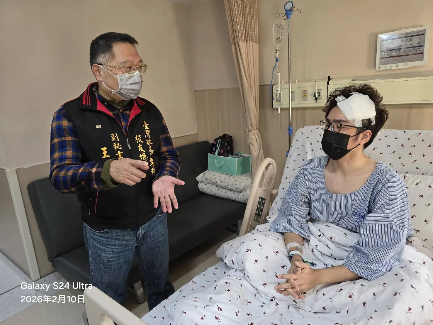 臺灣警察專科學校校友總會得知事件後高度重視。會長戴崇贒對朱員因公受傷表達關心與不捨,並指派副秘書長王輝傑及總幹事吳進義,於115年2月10日前往衛生福利部苗栗醫院探視慰問,並致贈因公受傷慰問金新臺幣1萬元,祝福朱員安心養傷、早日康復。