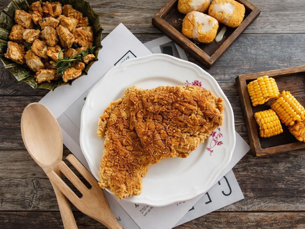 這麼高的口碑評價,當然不是毫無來由。《紅帽炸物》強調現點現做,招牌南屯必吃炸物「無骨鹽酥雞」採用去骨雞胸肉,先以多種香料醃製入味,再透過真空按摩機反覆拍打,讓醃料充分滲透到肉纖維之中,使雞肉在炸製後依然保持鮮嫩多汁。客人點餐後才開始裹粉下鍋,高溫油炸瞬間鎖住肉汁,外層形成金黃酥脆的薄皮。起鍋後再刷上店家特製沾醬,帶有微微烤肉風味,鹹香中透出一點甜味,一口咬下外酥內嫩、肉汁四溢,是這間台中人氣鹹酥雞店最受歡迎的品項。