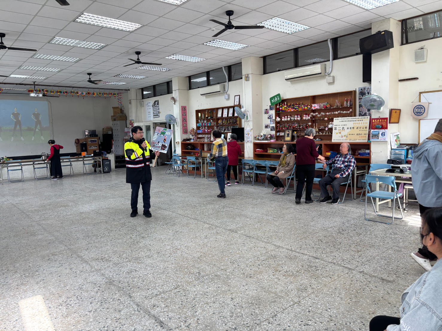 臺東分局富岡派出所為提升長者安全意識,日前前往轄內文化健康站,利用長者聚集時機,辦理交通安全與反詐騙宣導活動,透過面對面互動交流,強化長者自我保護觀念。