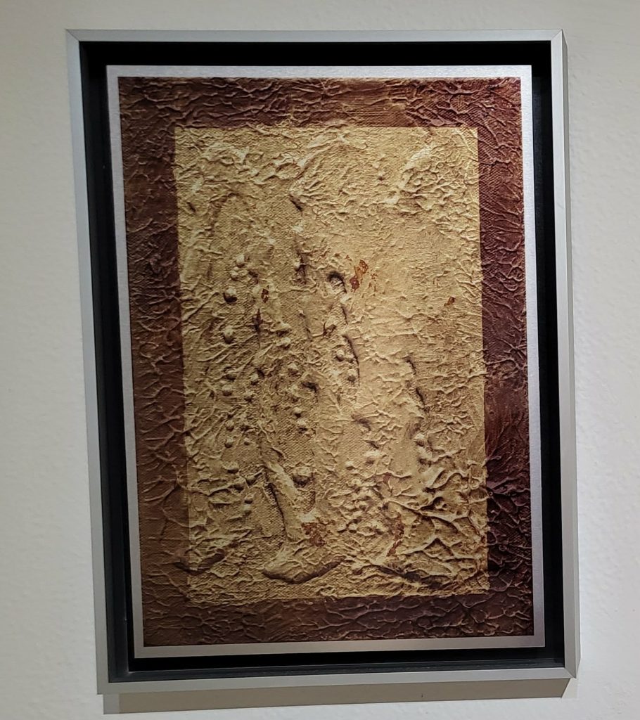 本身也是雕塑家的邱建銘,對於平面創作的質地與肌理,特別講究。他細述作品創作過程中如何將平面與立體融合為一,以及讓時間的堆積和空間的移位,留下標記。文字不再僅供閱讀,而成為可被壓印、覆蓋與侵蝕的物質痕跡。也是他對過往創作的再閱讀與補註。