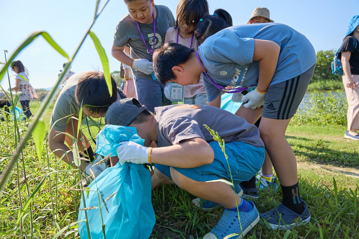隨後,孩子們分組進行任務:有的移除外來種植物,有的清理河岸垃圾。這次發現塑膠垃圾特別多,像是寶特瓶、塑膠袋等。孩子邊撿垃圾,老師提醒,「每一次遊玩,我們都能決定環境是否依舊乾淨。」即興的環保教育,遠比任何講解都深刻。
