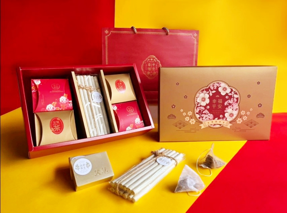 桃竹苗「幸滿福」年節系列禮盒以「平安、好時、滿堂、盈福、招福」為設計理念:桃園市龍潭區高原社區發展協會「祈艾招福平安禮盒」,選用在地艾草製成茶包、手工皂及薰香條,延續民俗中艾草驅邪納福的象徵意涵;新竹縣寶山鄉觀光休閒產業文化協會「柑蔗菓物好時光禮盒」,以在地之柑橘果乾搭配黑糖、愛玉DIY材料包,讓民眾在家即可動手體驗,享受親子同樂的年節時光,傳遞好時光、好心情的新春祝福。