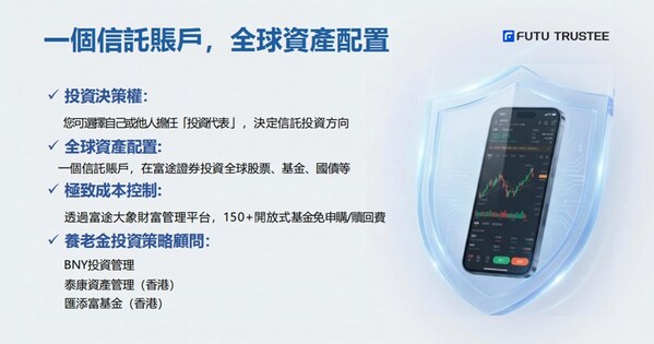 香港2026年1月21日 /美通社/ — 富途控股(Nasdaq: FUTU)旗下富途信託(Futu Trustee Limited)於 2026 年 1 月 9 日,在「2025 香港財富管理高峰論壇暨第十二屆港股 100 強頒獎典禮」活動分會場,正式推出「富途養老信託」—— 一款專為香港中產家庭量身打造的養老與財富傳承產品。憑藉金融科技驅動,該產品將傳統家族信託的門檻由數千萬港元大幅降至 300 萬港元起,收費更親民透明,標誌著香港普惠信託服務正式邁入新階段。