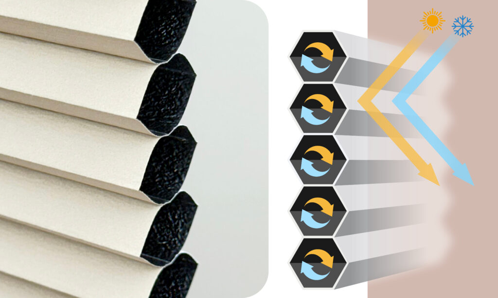 身為台灣蜂巢簾第一把交椅的芮格強調,蜂巢簾的最大特色就是它的中空六角形結構,像蜂巢一樣的結構是優點的核心,其最大的優勢是超級節能隔熱 (Energy Saving) ,中空的空氣層能有效阻擋熱傳導和熱對流,隔熱效果好,特別適合西曬窗、頂樓加蓋或對節省冷氣 / 暖氣電費有需求的人。內層有鋁質隔熱層的遮光款效果極佳。