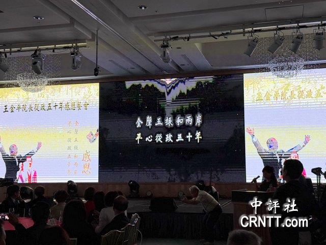 國民黨籍前立法院長王金平21日在高雄舉辦“從政50年感恩餐會”,現場以“金聲玉振和兩岸,平心從政五十年”兩句話貫穿主題。(中評社)