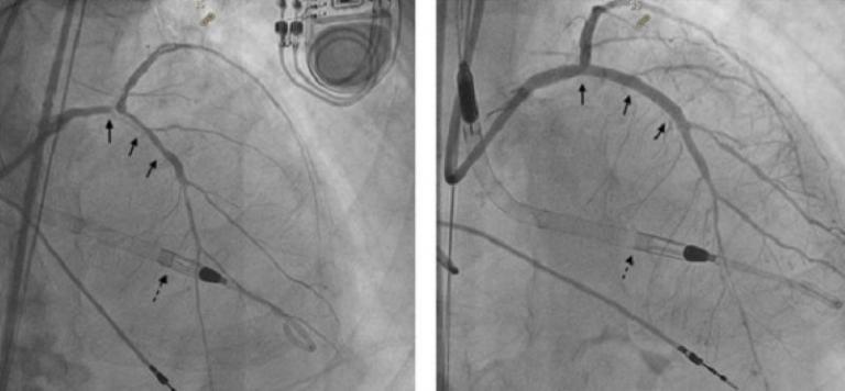手術由心臟內科連朕緯醫師擔任主責,連朕緯醫師說明,病人的冠狀動脈攝影顯示病灶高度複雜,包含左主幹遠端狹窄80%、前降支近中段狹窄80%、左迴旋支近段狹窄 70%,且血管鈣化嚴重,無論以心導管介入治療或外科開刀都乘載極高的手術風險,使治療規劃更具挑戰,考量病人心臟功能脆弱,心臟科團隊討論後選擇於 Impella 循環支持下進行介入治療。