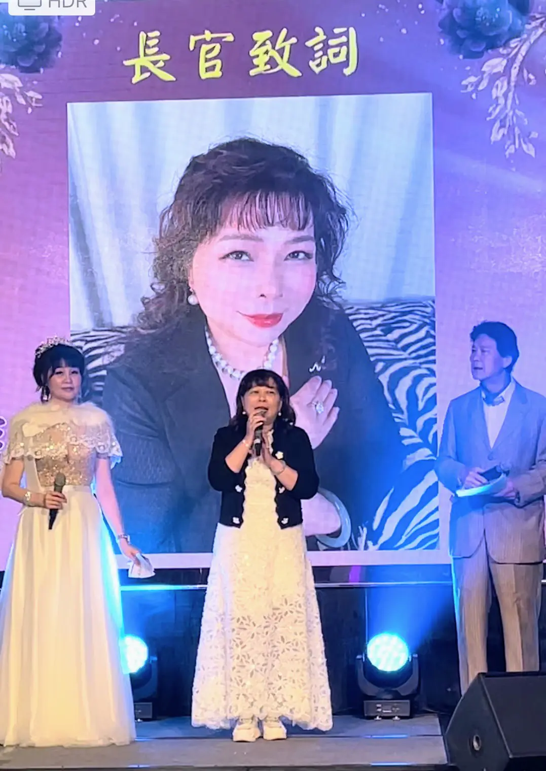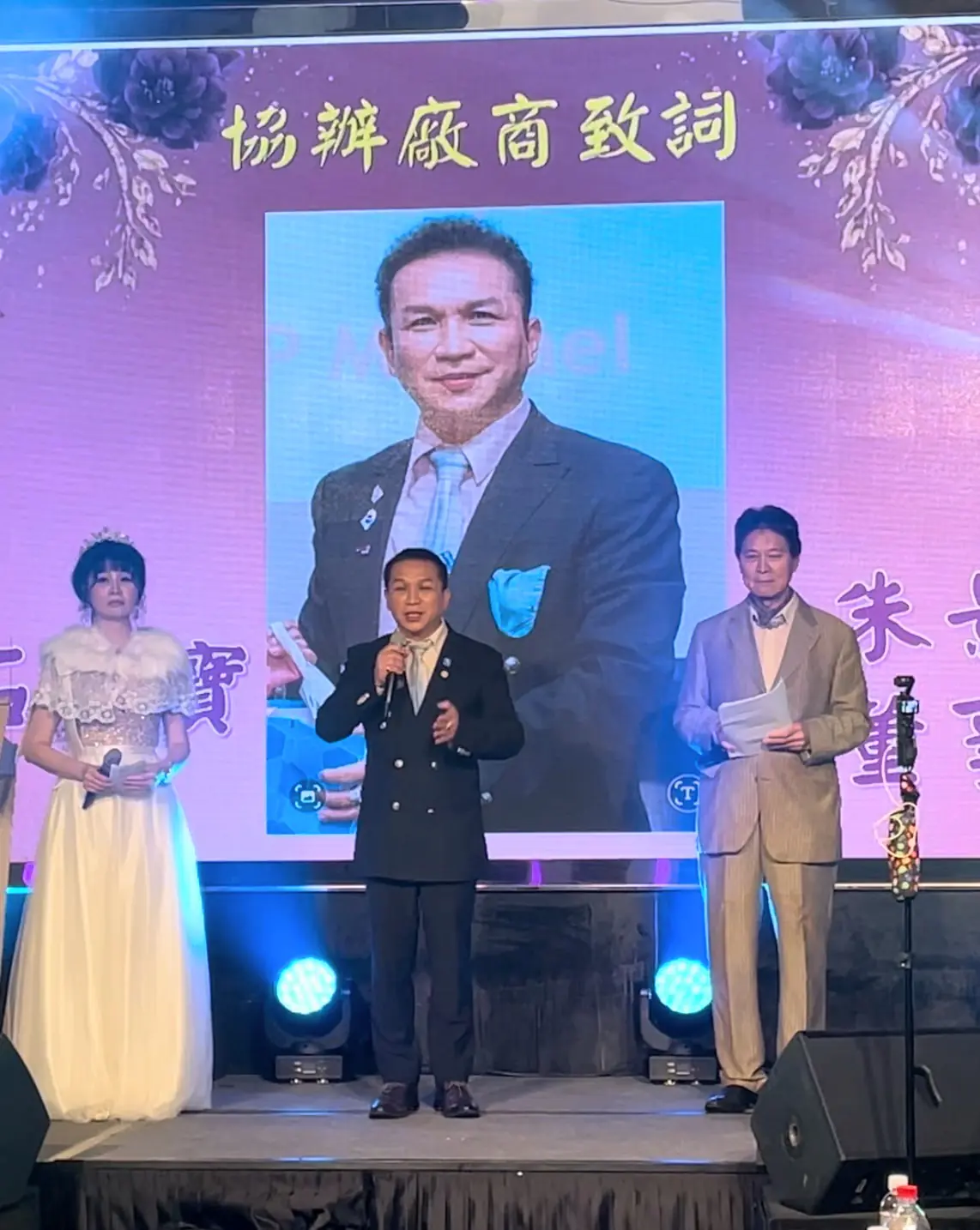 主辦單位中華兩岸消費者優質產品評鑒協會理事長林欣潔,與協辦單位典金石純金珠寶公司董事長朱景傳紛紛感謝大家蒞臨選美現場,大家的參與對佳麗是莫大的鼓勵及加油,同時也祝福每位佳麗都有很好成績。