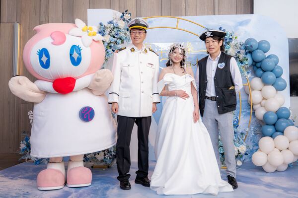 張市長並提到,稍早前往平鎮宋俊宏婦幼醫院參與院慶時,看到許多新手父母懷抱嬰兒、笑容洋溢,深刻體會「快樂的負擔」真諦。他祝福新人在人生航程中,如同本次婚禮主題「海洋奇緣」,攜手乘風揚帆、共築溫暖家庭,讓愛情與幸福如大海般深遠長久。當被問到婚姻和諧秘訣時,張市長以吵架不回嘴的相處哲學與新人共勉。