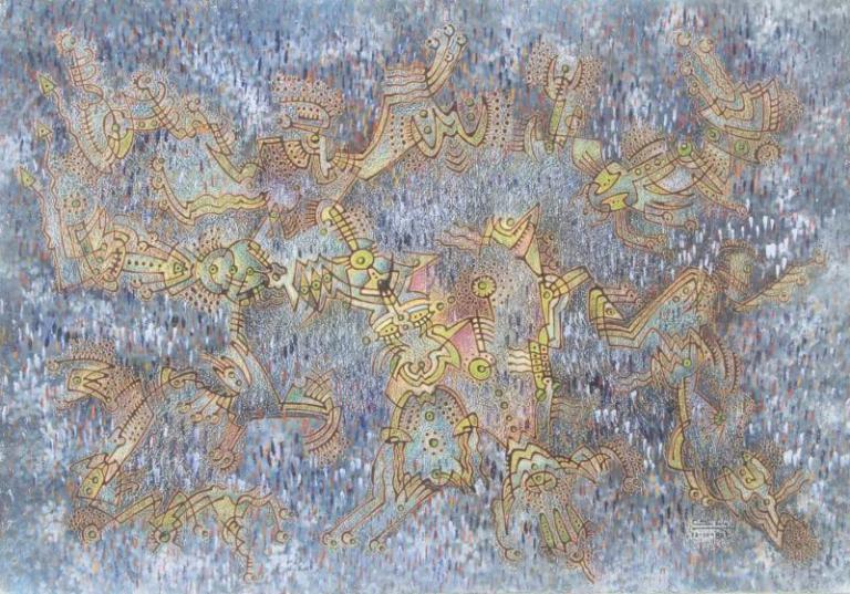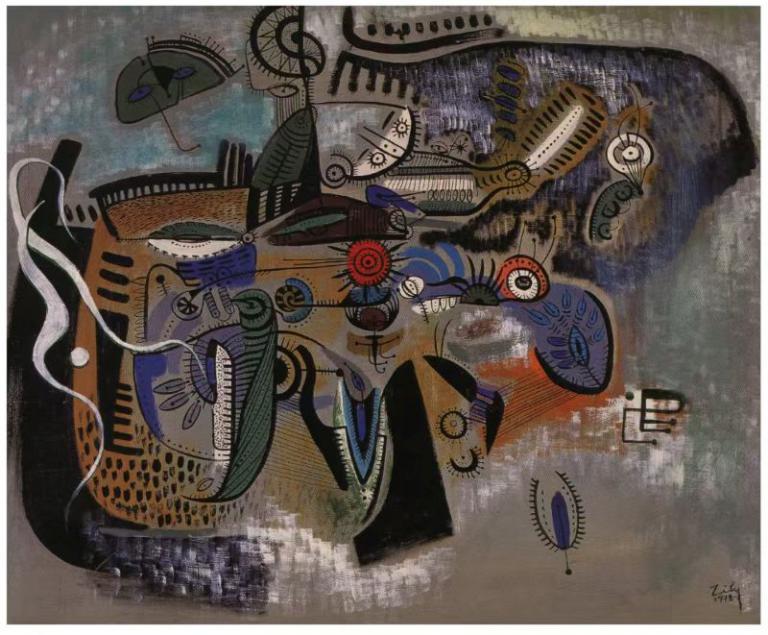 朱麗麗曾在西班牙生活十五年,汲取西方藝術養分,卻始終攜著中國文化的根脈,她的創作以六種最簡單的線性元素為起點:點、曲線、直線、三角線、半圓線、圓形線,以此構建起獨特的藝術語言,她將這種方法稱為「型改魂不換」一一形態可以流變,精神不曾動搖。在她的畫面中,東方與西方相遇,彼此平等地對話。
