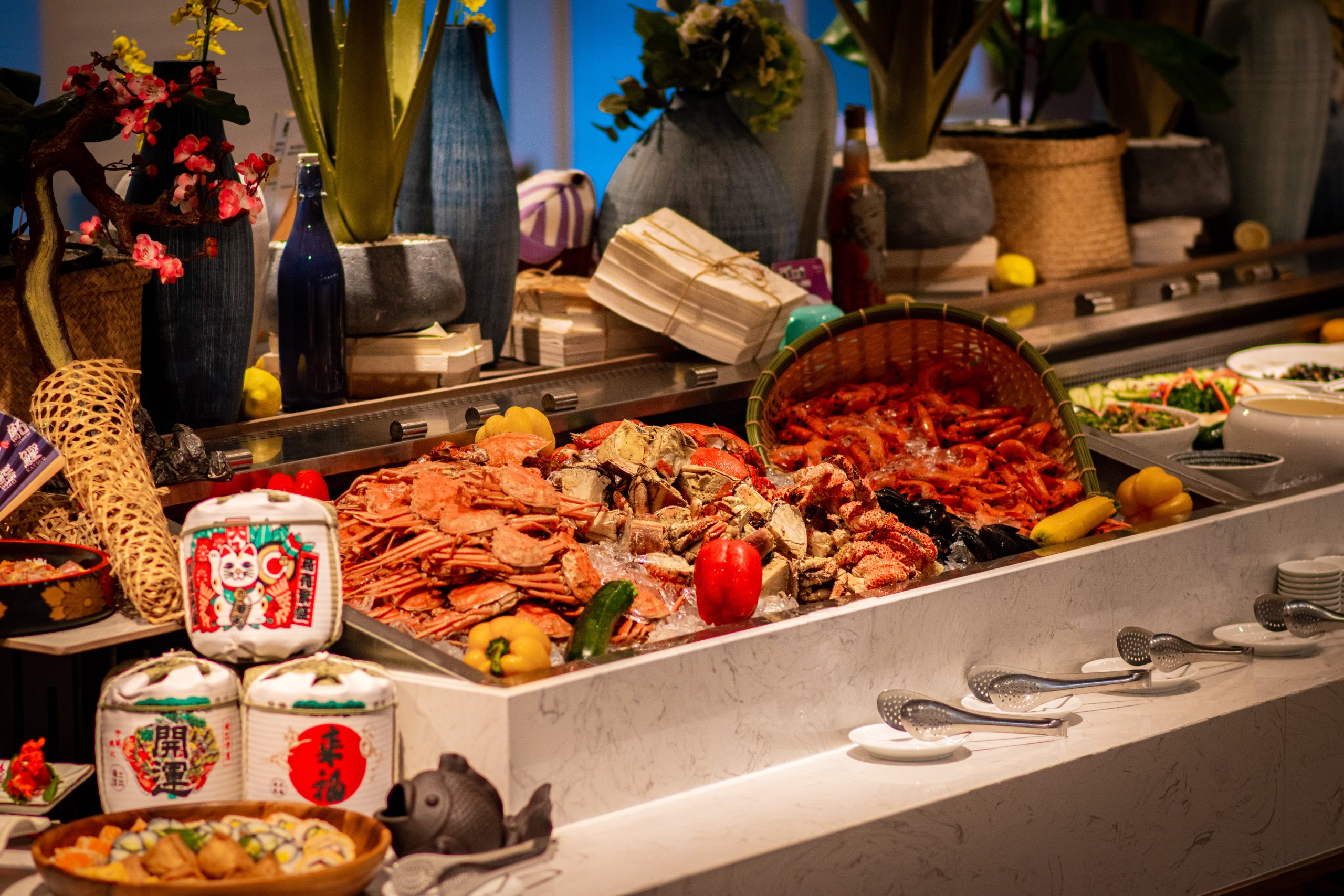 特別在平日晚餐時段,每桌再加碼贈送限量「暖心小火鍋」一鍋(每日限量10組,送完為止),湯底可選「靈芝補氣」或「番茄蔬菜」兩款。靈芝補氣湯底以桂格靈芝飲調製而成,湯頭清爽溫潤,帶著淡淡草本香氣,入口後彷彿一股溫和能量緩緩滲入身體,特別適合冬季進補,喝一口就覺得全身被溫柔包覆、補足元氣;另一款番茄蔬菜湯底則酸甜清新,多種蔬菜熬煮出自然鮮甜,搭配食材涮煮後滋味層層疊加,讓寒冷夜晚的餐桌瞬間暖意融融。這款小火鍋不僅是加值福利,更是將養生概念融入自助餐的巧思,讓賓客在享用豐盛百匯之餘,也能感受到被細心照料的溫暖。