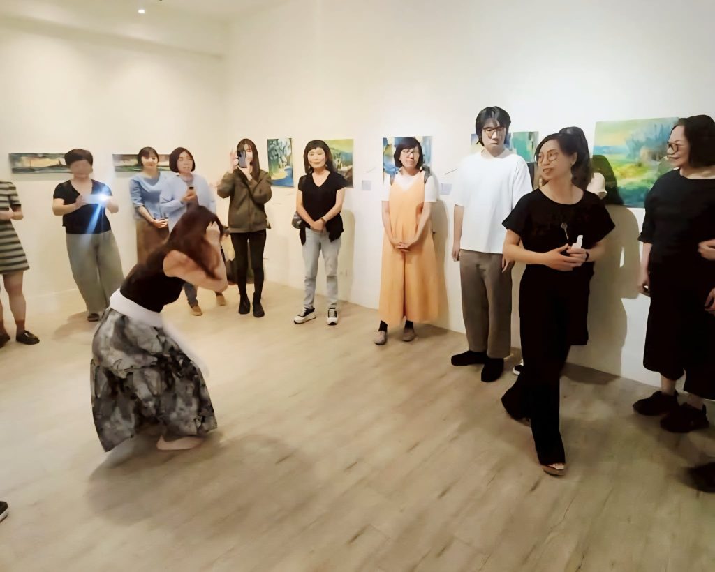 這種跨界實踐並非追逐潮流,而是一種對當代條件的誠實回應——當科技重新界定創作方式與觀看經驗時,藝術空間亦必須重新思考其角色。亞書藝所因此成為思辨與實驗的場域,而非是僅僅展示成果的場所。如<時間是一首未完成的詩—郎亞玲空間行動與徐皎雲的裝置藝術聯展>治空間、舞蹈、裝置為一爐;而<立體遊戲—設計師洪孟毅的圖像與色彩之舞>;<任性揮灑—2025羅榮源的色彩王國與線條之舞>,則見不同專業養成,開展出不同的視覺美學。