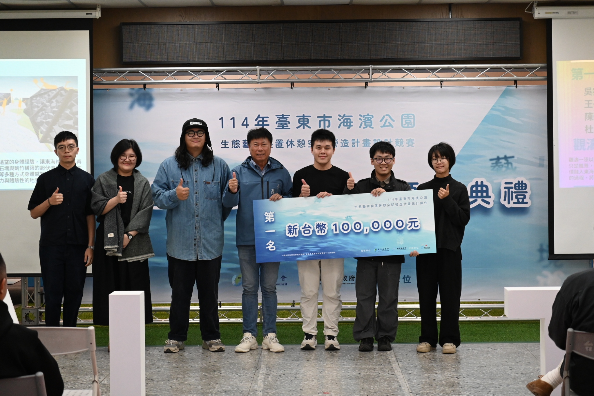 市長陳銘風致詞時,首先恭喜所有獲獎團隊,也感謝每一位參與競賽的創作者投入心力。並表示,市公所未來將依整體規劃與安全評估結果,逐步推動優勝作品於海濱公園設置,期盼透過公共藝術,讓市民與旅客在親近海洋的同時,深化對永續議題的理解,形塑具代表性的臺東文化地標。