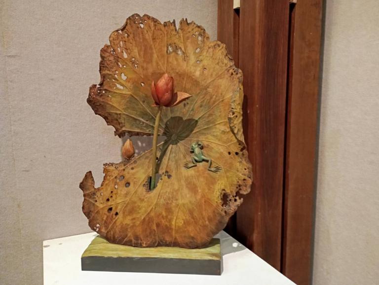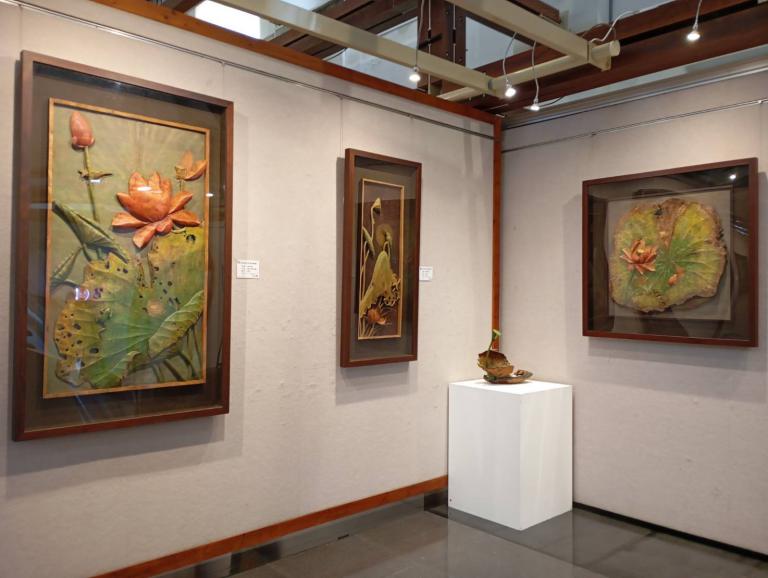 這次展覽回顧黃老師六十年創作歷程,題材多元,其中以蓮花系列作品最具代表性。透過長年觀察自然生態與生活景致,並不斷精進構圖與技法表現,使原本質地堅硬的木材轉化為姿態生動、層次細膩的藝術作品,展現蓮花清淨堅韌之意象,深獲各界好評。