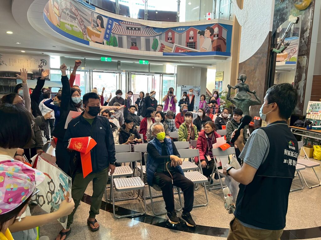 活動在李美麗區長與書法老師們共同開筆寫下吉祥祝賀詞後揭開序幕,預祝民眾「馬到成功」、「福氣滿盈」。南區吉祥物「阿柴」也穿上賀歲裝扮現身,發放特別印製的限量吉祥物紅包袋,現場排隊人潮絡繹不絕。