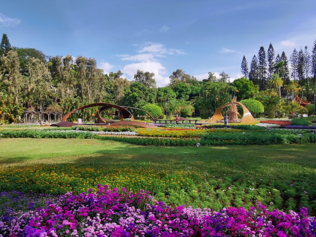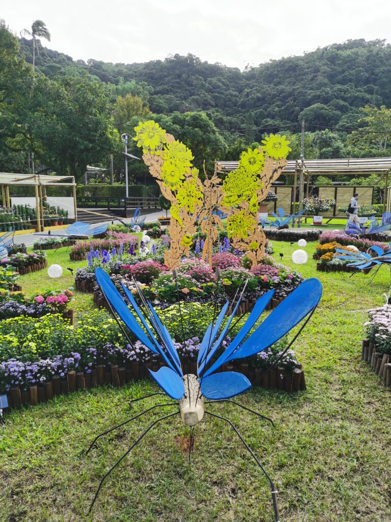 「夢花園」則以觀葉植物與造型菊花塑造童趣與幻想氛圍,其中由園藝管理團隊打造的巨型變色龍「花傻傻」成為焦點,其旁並設置蝴蝶、狐狸、大象、小鹿等角色造景,各自象徵不同的性格特質與內在力量,鼓勵民眾在花園中尋找與自身情感相連的元素,以更輕鬆的方式回望生活與自我認同。