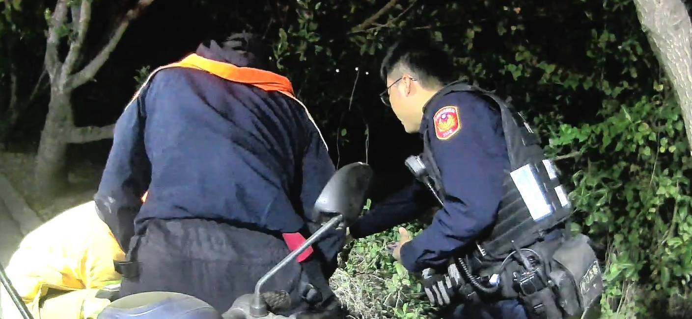 劉姓老翁(31年次)於凌晨獨自外出晨運,因光線昏暗,不慎跌落於水溝旁樹枝中,所幸巡邏警員發現受困老翁,立即通報救護人員到場救援,在警消協力下順利將老翁攙扶至救護車上,所幸老翁意識清楚無生命危險,家屬對於警方積極協助深表感謝。