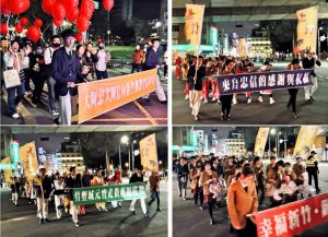 今晚這場元宵情人節走街巡禮活動,在竹市警二分局副分局長坐鎮指揮下,二分局員警協同義交維持交通秩序及安全,整個走街活動圓滿順利,主辦單位也特別致謝竹市警察局員警同仁提供安全的走街環境,以及新竹市環保局清潔隊提供環境衛生服務。忠信師生也將組織「淨街V工隊」共同維護環境整潔。生服務。忠信師生也將組織「淨街V工隊」共同維護環境整潔。