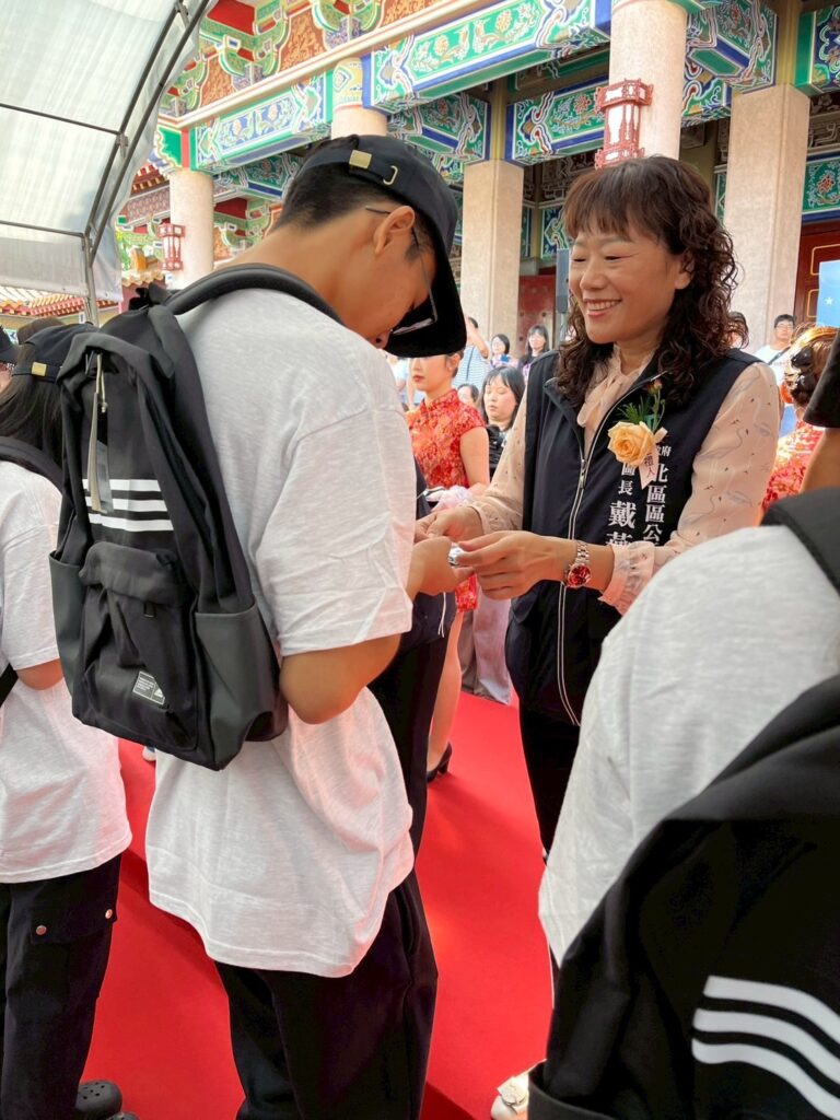 民政局副局長陳寶雲代表市長盧秀燕及民政局局長吳世瑋出席,恭喜學子們邁向人生嶄新階段。她勉勵青年未來無論遇到任何挑戰,都要保持青春無畏的心,勇敢逐夢,創造屬於自己的精彩人生。她也提醒學子們,成年不僅是身份的轉換,更意味著責任的加重,期許大家懷抱夢想與感恩,勇敢追尋未來。