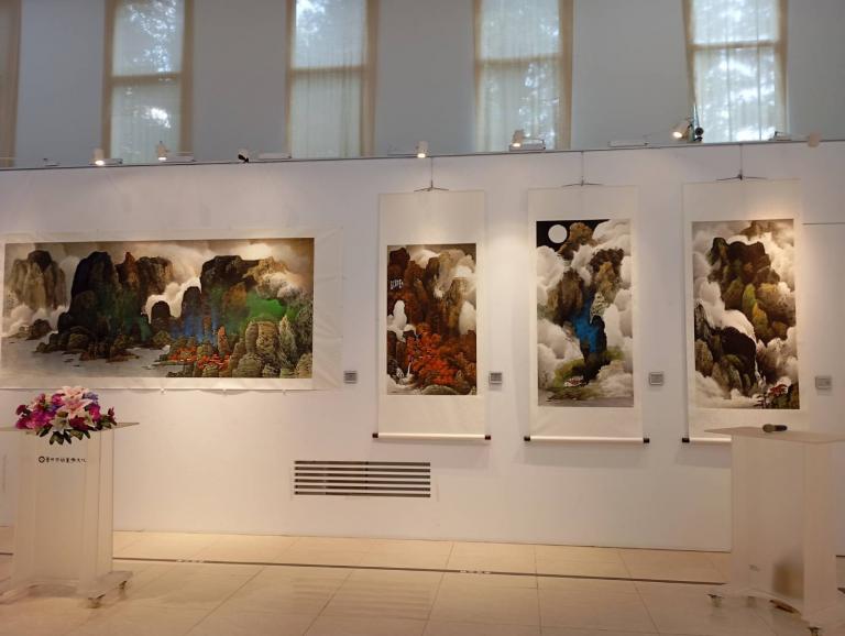 劉玉美葫蘆墩文化中心水墨畫個展開幕貴賓雲集,除葛憲能老師外,還有林清鏡教授等多位畫壇大師蒞臨指導,畫展同時特別邀請「云兮水月箏樂團」彭敬淇團長現場演奏箏樂彝族舞曲、浪人琵琶、菊花台、菊次郎的夏天、採蘑菇的小姑娘等曲目。在墨韻流轉與箏樂聲悠揚中,現場來賓共同體驗一場融合人生?折與藝術昇華的文化饗宴。