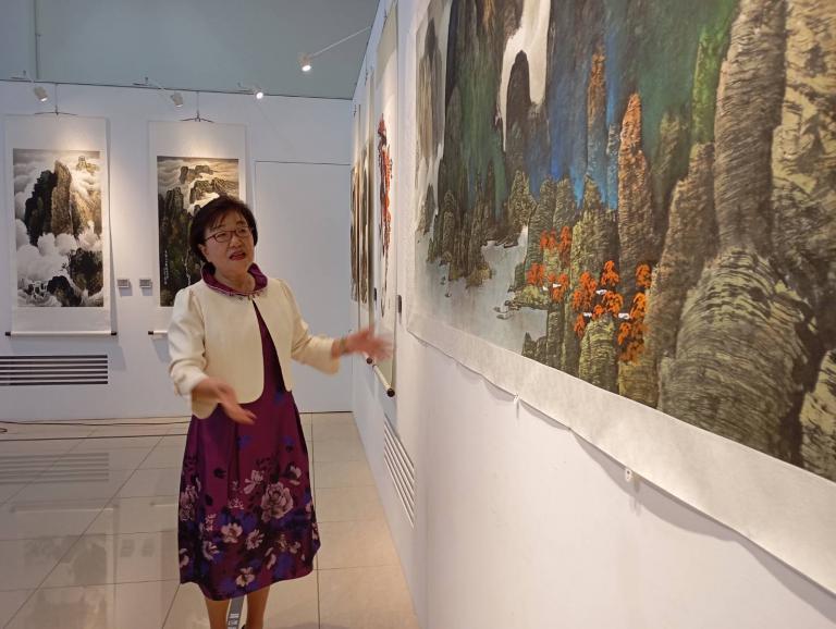 ▲「墨韻情懷-劉玉美水墨創作個展」即日起到5月3日在台中市葫蘆墩文化中心展出,歡迎民眾前往欣賞。(圖╱記者孔亮云攝)