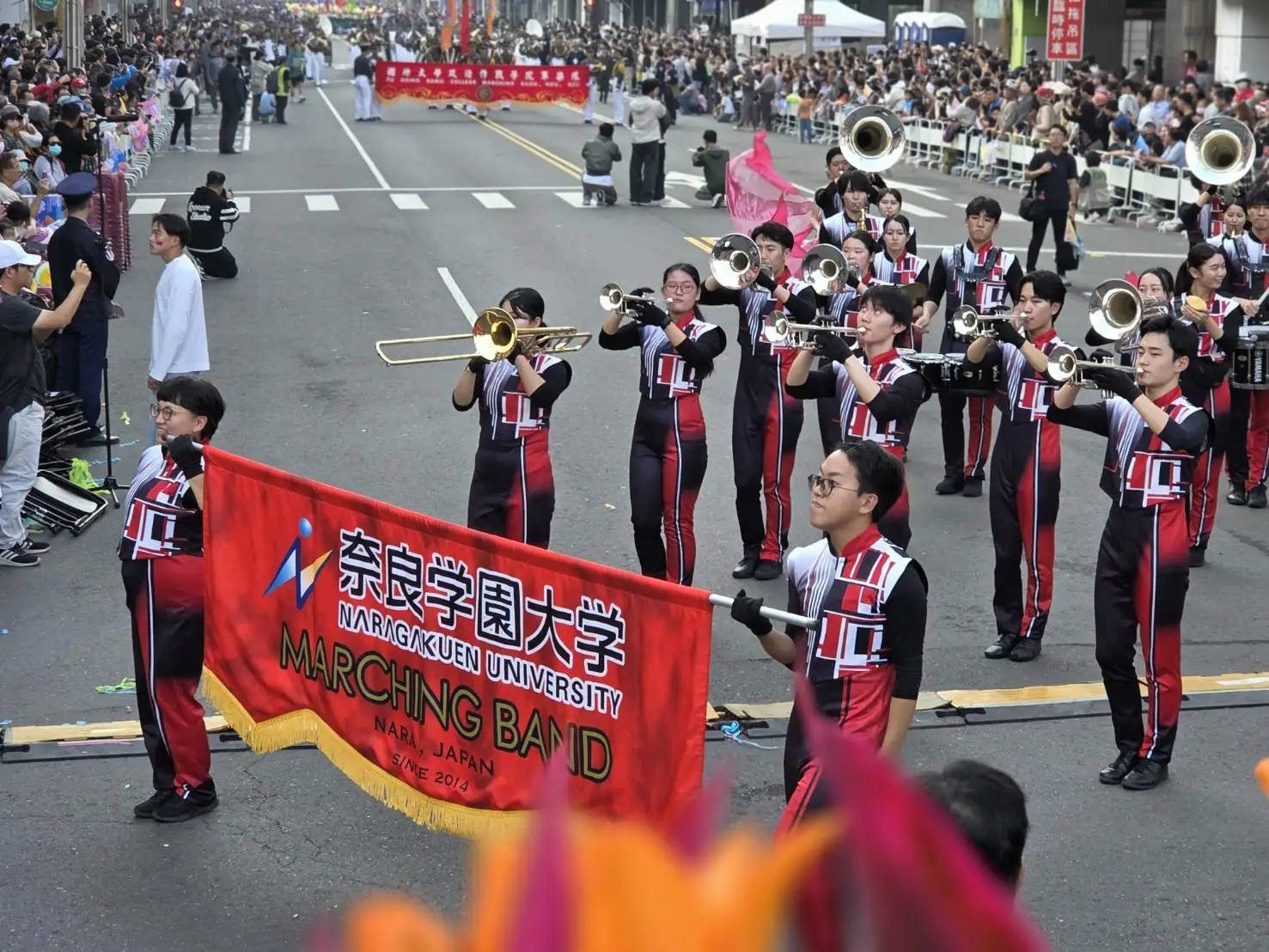 國際團隊有日本奈良學園大學行進樂部、熊本工業高校吹奏樂部、香港普音步操樂團與格蘭風笛聯合樂團,以及韓國濟洲海女歌舞團等,帶來多元文化演出,觀賞民眾喝采聲不斷,表示讚嘆與歡迎。