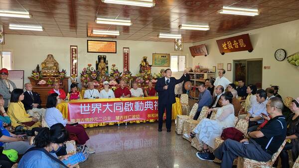 【記者葉志成/桃園報導】「世界大同啟動典禮」8日在桃園市平鎮區觀音堂隆重舉行,會場莊嚴肅穆、香花燈海輝映,吸引國內外宗教界與文化團體代表齊聚一堂,共同祈願世界和平、萬民安樂。典禮由慧吉祥上法師主禮,並邀請妙元二公主親臨現場,以慈悲與智慧之光開啟世界和平新篇章。