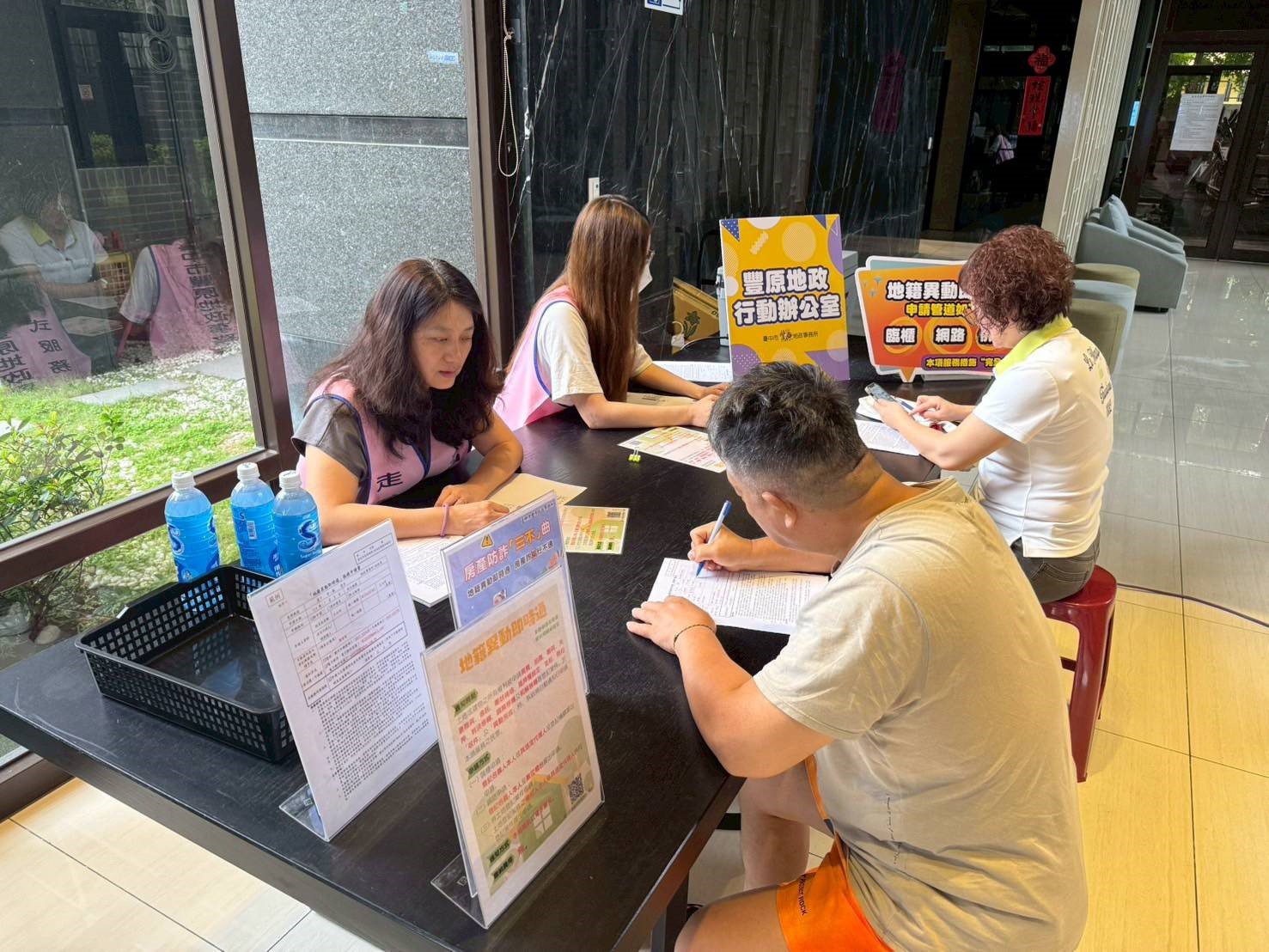 詐騙手法日新月異,不動產已成為詐騙集團鎖定目標,台中市豐原地政事務所推廣「地籍異動即時通」服務,全國首創利用假日或下班時間,以「行動辦公室」方式,主動出擊至轄區大樓實地受理「地籍異動即時通」收件服務,民眾只要本人攜帶身分證,花6分鐘就可完成申請,提升不動產安全守護力,省時更便利。