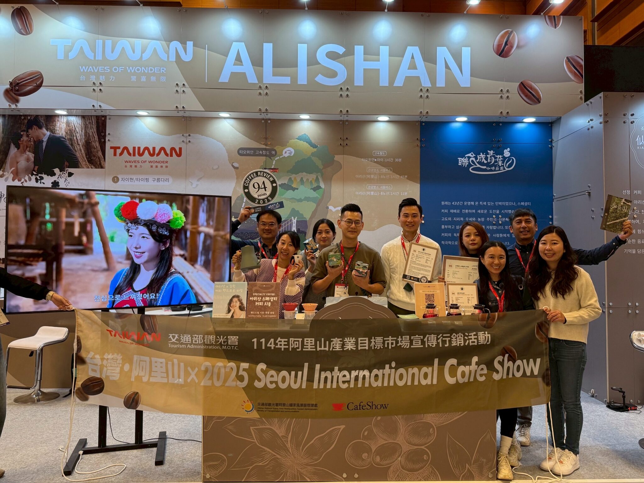 交通部觀光署阿里山國家風景區管理處(以下簡稱阿里山管理處)參與第24 屆「2025 Seoul Int’l Cafe Show 首爾國際咖啡展」,展期自114 年 11 月 19 日至22日於韓國首爾COEX展館盛大展出並順利落幕。本次以「精品咖啡X品味旅程」為主軸,攜手「鄒築園精品咖啡莊園」、「聯合成青葉咖啡莊園」、「仙井咖啡莊園」三家優質品牌共同呈現阿里山高山咖啡風味。展期間並與來自世界各地的咖啡專業人士及咖啡愛好者共同辦理杯測活動,透過專業感官評鑑,展現阿里山咖啡馥郁香氣、多層次風味與國際級品質,成功吸引眾多韓國民眾、國際買家及業界人士前來交流。